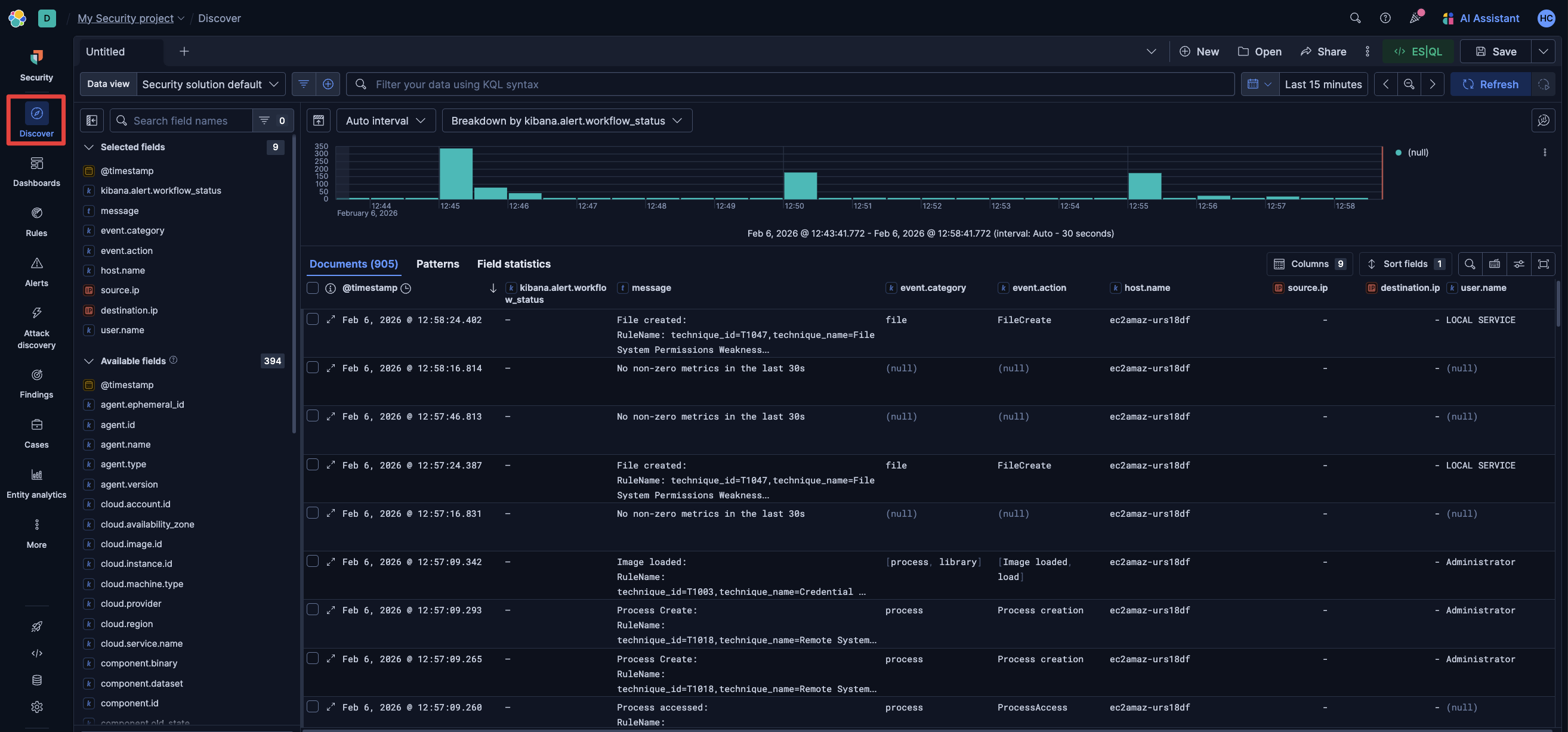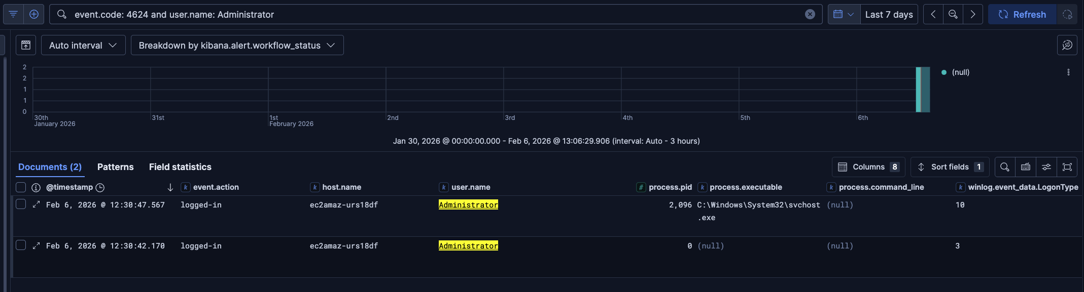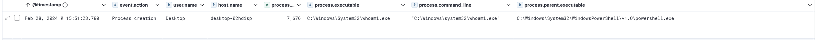 - There are several ways to look for this one. We could look for the process we ran the event from, we could look for part of the elastic command, or we could look for the whole thing.