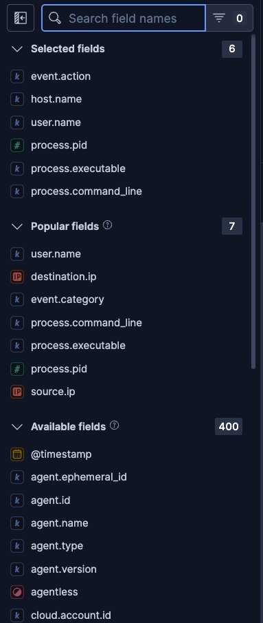 If a field doesn’t exist within an event you are viewing, you can still add it from the Sidebar. For that reason I usually will add all my fields from the sidebar before I start searching.