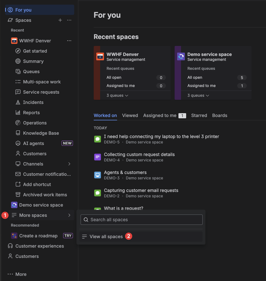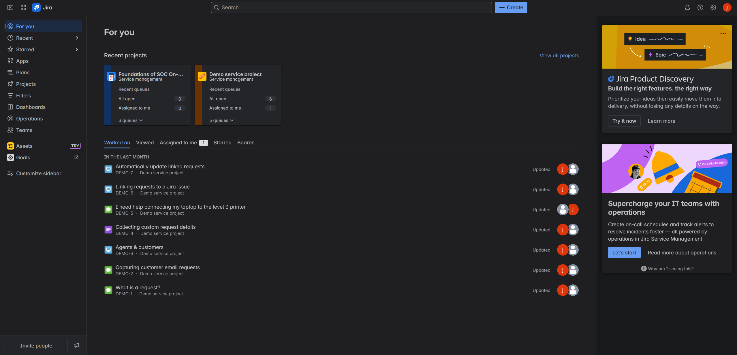 - Click the “Jira Service Management” logo in the top left to go to the home page.