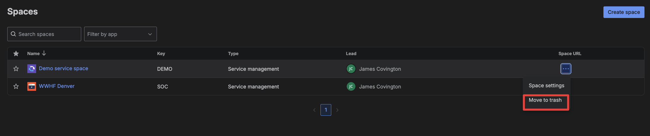 More Spaces → View all spacesthen under the settings of the sample space select “Move to trash”. -