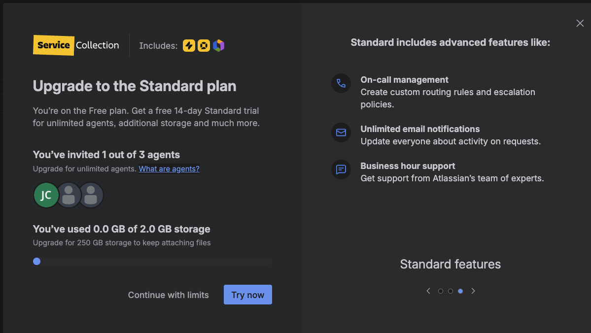 - Atlassian may have automatically enrolled you in a free trial, so if you don’t see the “Upgrade” button, you should be set.