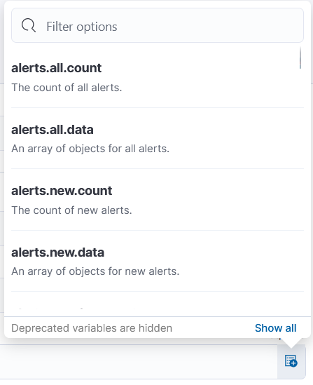 - For more information on how specifically these variables work, see here: https://www.elastic.co/guide/en/kibana/current/rule-action-variables.html